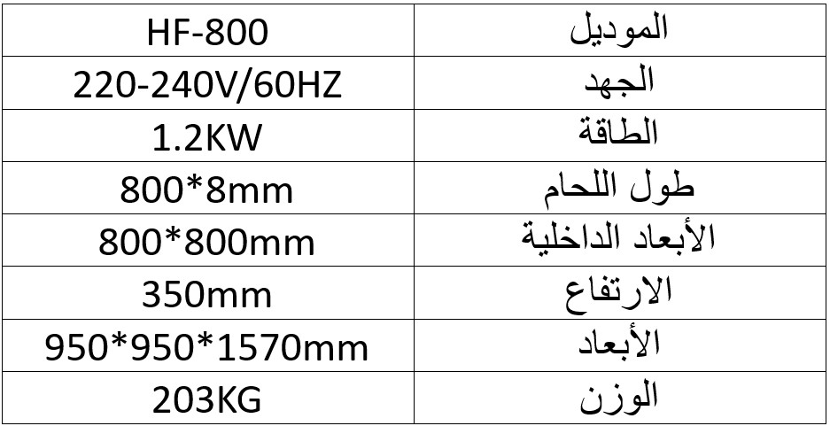 - الأبعاد الخارجية: 950 * 950 * 1570 مم.